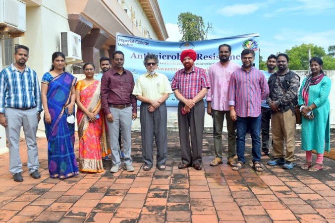 Dr Thinesh Thangadurai gives a presentation on the use of antimicrobials at Pondicherry University, raising awareness on usage amongst staff and students.