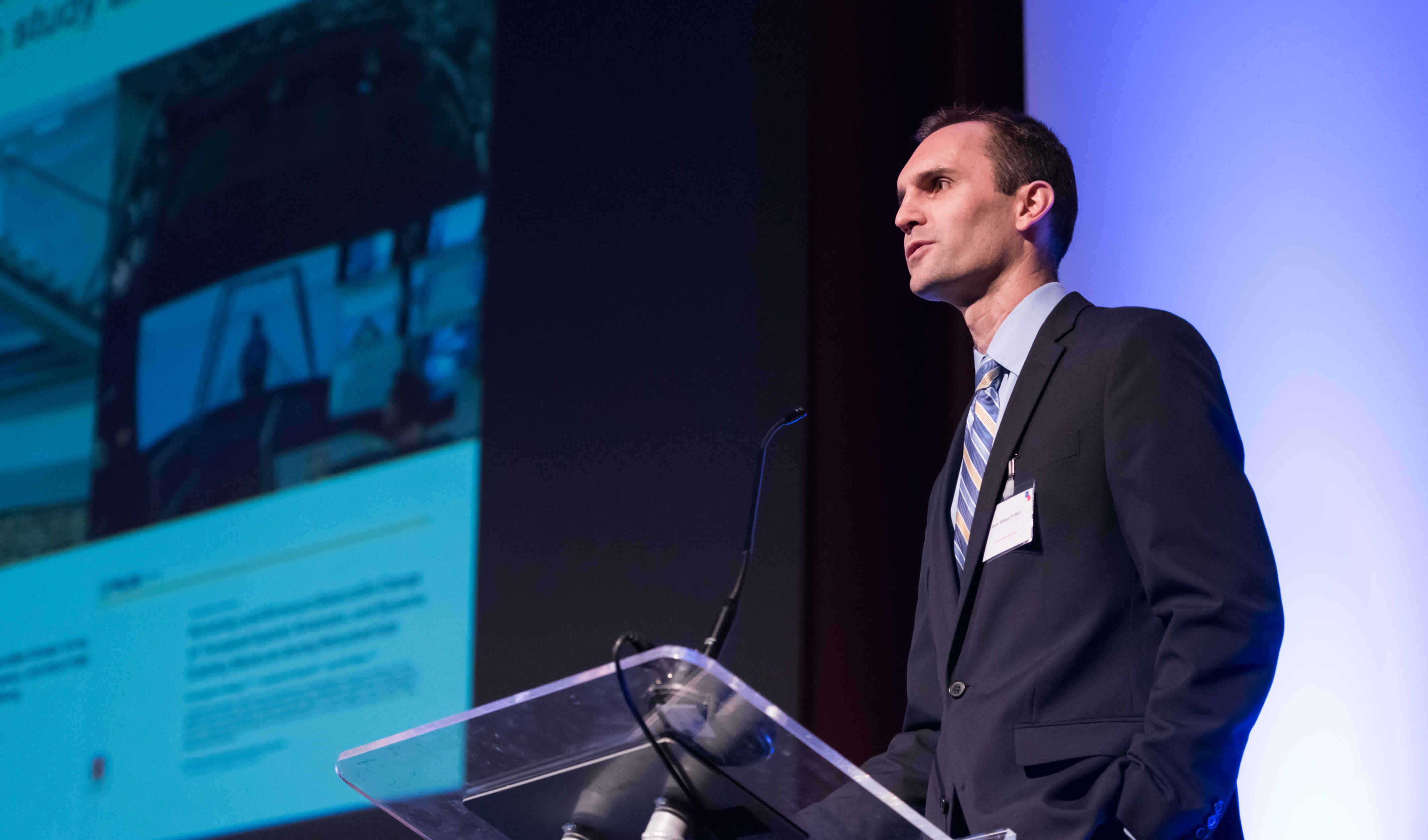 Dr Jason Wilken presenting his research titled ‘Opinion to Evidence: Objective Assessment to Guide Prosthetic and Orthotic Practice’.