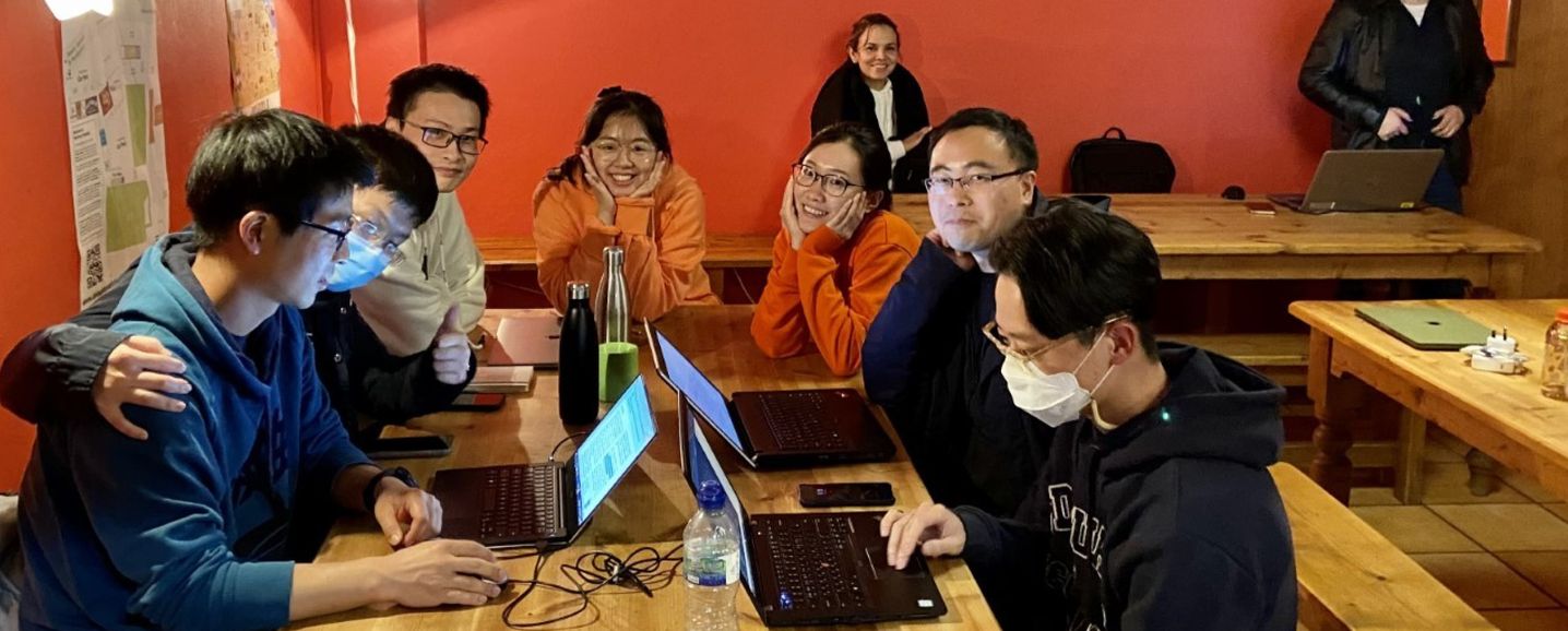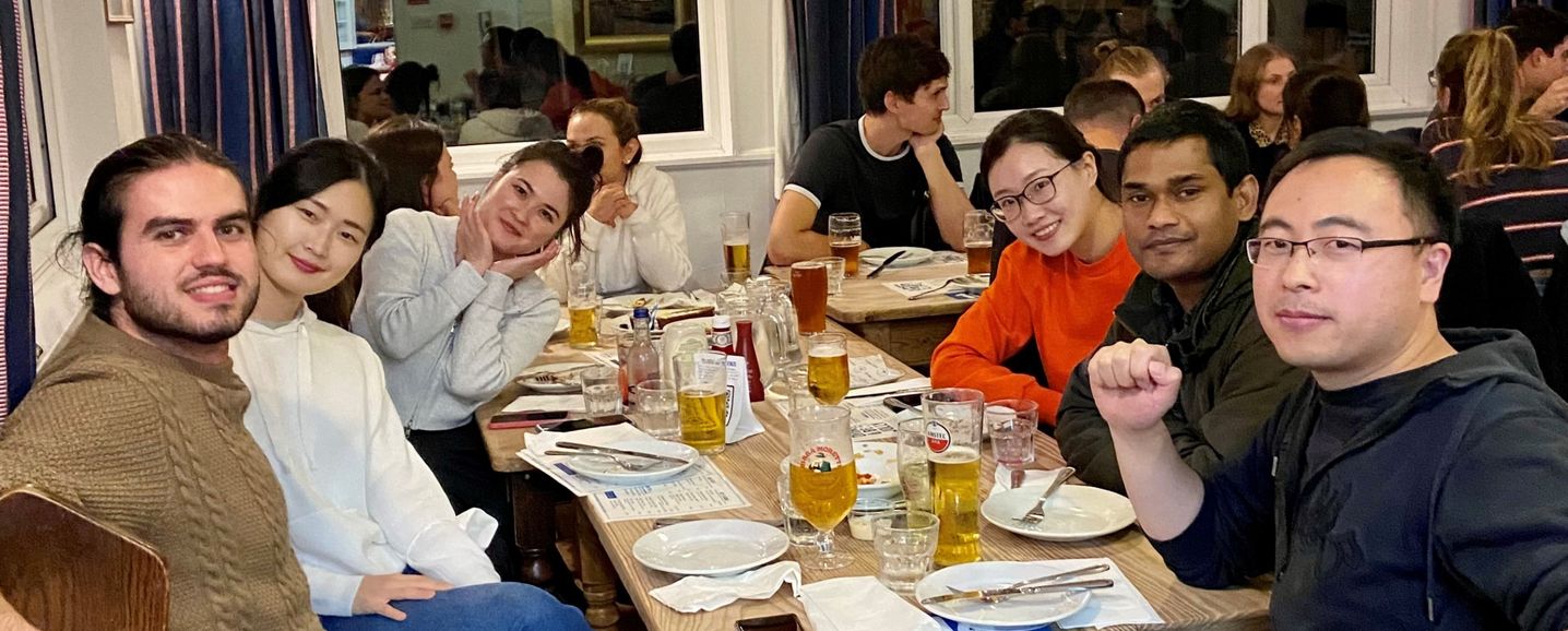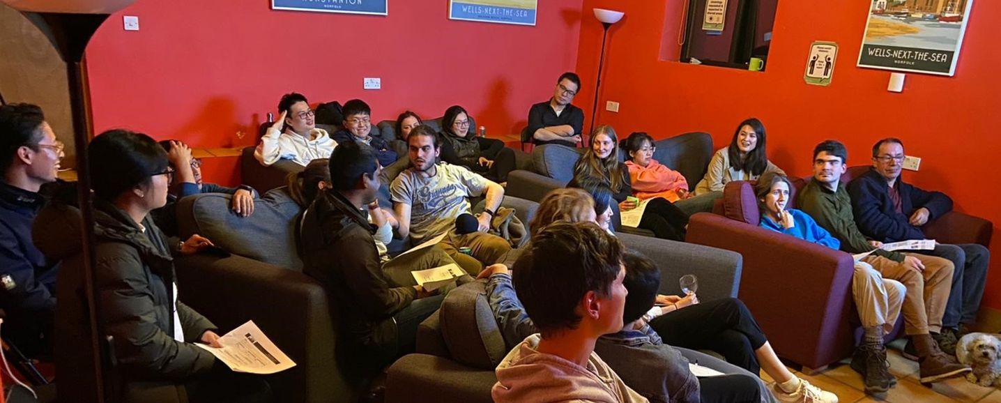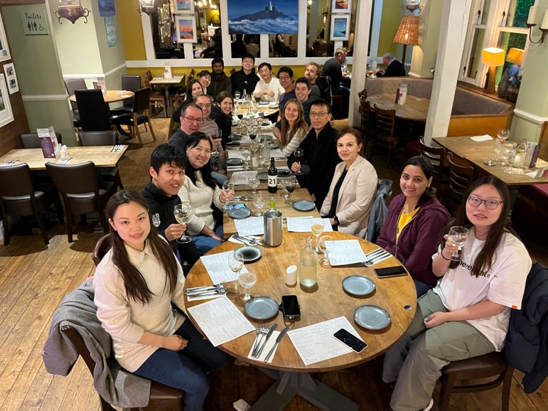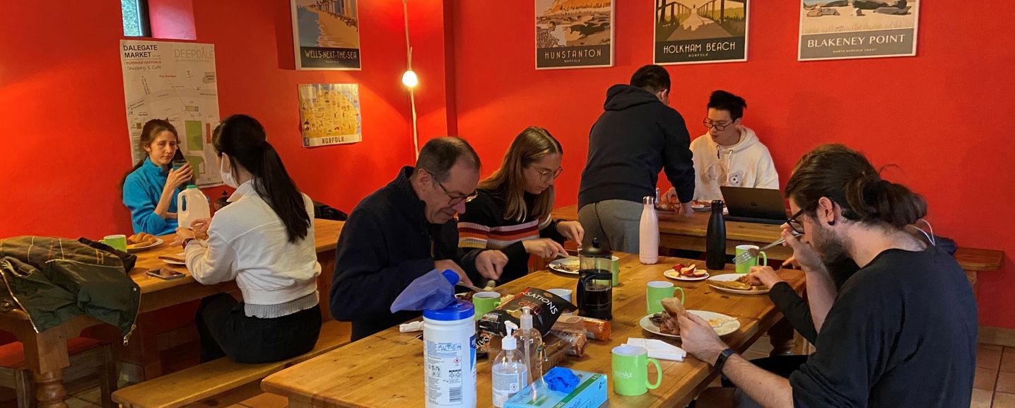 2021 saw a welcome return to an in-person Bandgap, and an end to James' hard-fought battle to persuade the group to visit his native Norfolk. Despite a three-hour fuel crisis-related delay, the group left rainy London in high spirits. A brilliant programme of talks ranged from presentations on spectroscopic techniques to messages of hope from the latest IPCC report, and provided food for thought on how to make our laboratories more sustainable. Reshma Rao took home first prize for her talk on laser-induced temperature jump measurements, while Cindy Tseng, visiting from sunny California, was awarded the runner-up prize. The Norfolk sun did in fact make a very welcome appearance for a Friday afternoon stroll along the beach (and dip in the sea for Richard Pacalaj), but fortunately the rain lasted long enough to ensure an authentically damp experience eating fish and chips on the sea wall. Other culinary highlights included a visit from a wood-fired pizza van as well as a wonderful cooked breakfast both mornings thanks to Yifan Dong. The group successfully limited warming to 1.9 °C by the end of the century during mock climate negotiations, and demonstrated their talents (or lack thereof) on the karaoke machine.