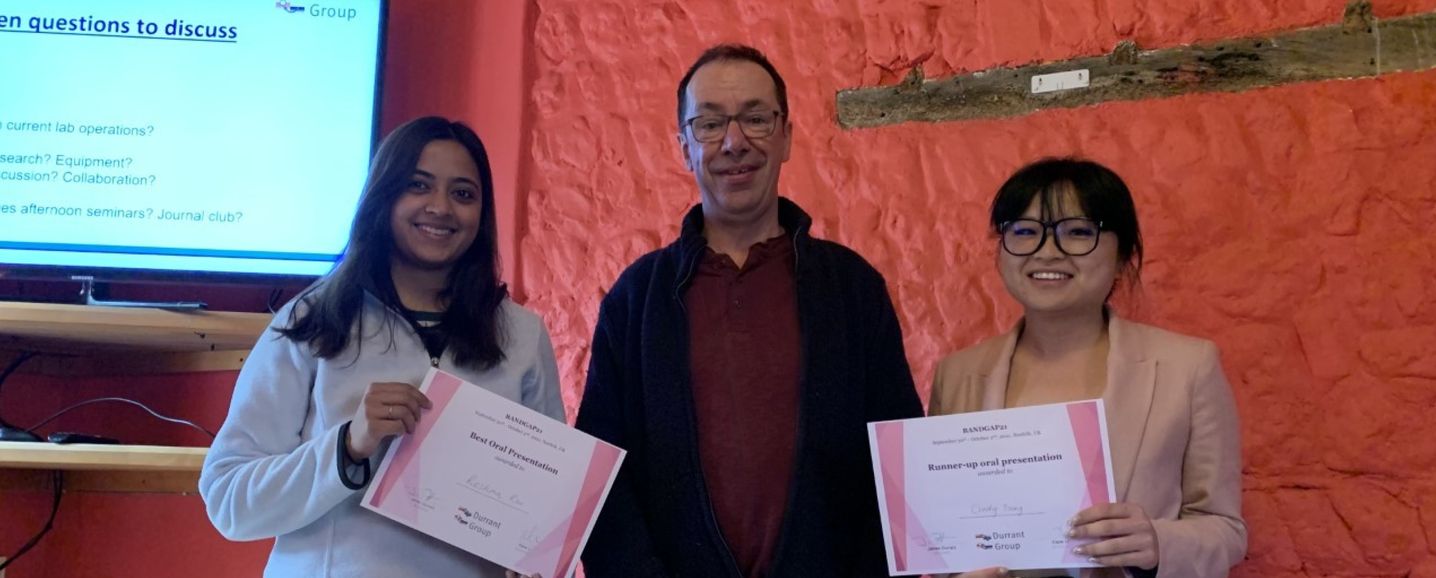 After a three-hour train journey and a packed lunch, James kicked off Bandgap22. We had a brilliant range of talks across the three-day programme, ranging from future materials to how to cheer up editors when trying to get published! Congratulations to Caiwu and Sam, our joint winners for their respective talks on TAS and spectroelectrochemistry of iridium oxides.