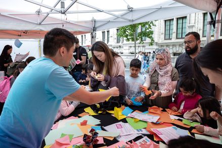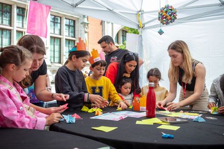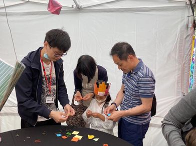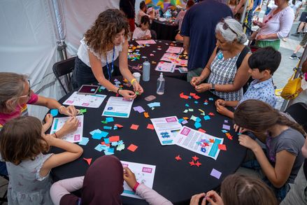 Young visitors busy making Metal Halide Perovskites (MHPs) origamis