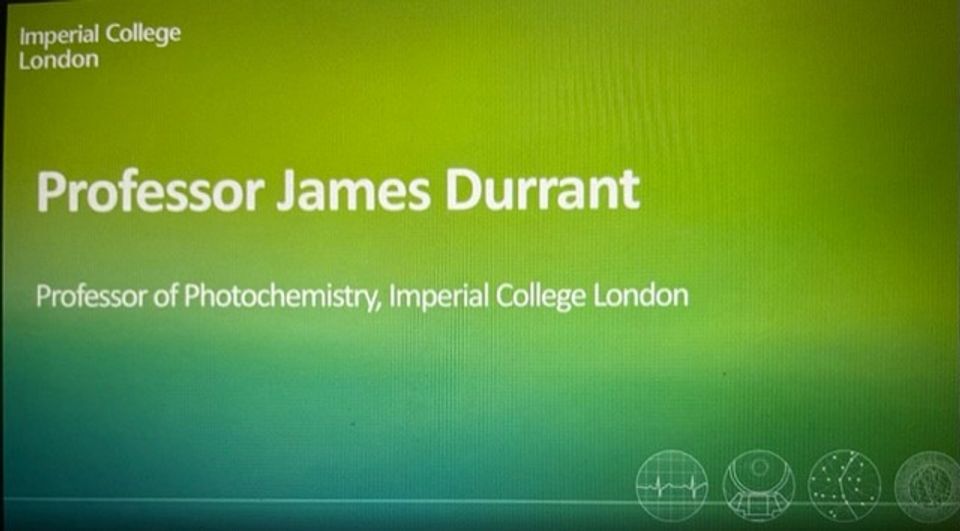 Professor James Durrant talking about next generation PV technologies in a showcase of early stage climate mitigation technologies, in the yearly IBP discussion on climate change, in collaboration with the Grantham Institute for Climate Change and the Environment and the Energy Futures Lab at Imperial College London.