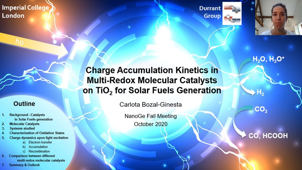 Sacha Corby talking about her paper "Charge Separation, Band-Bending, and Recombination in WO3 Photoanodes"