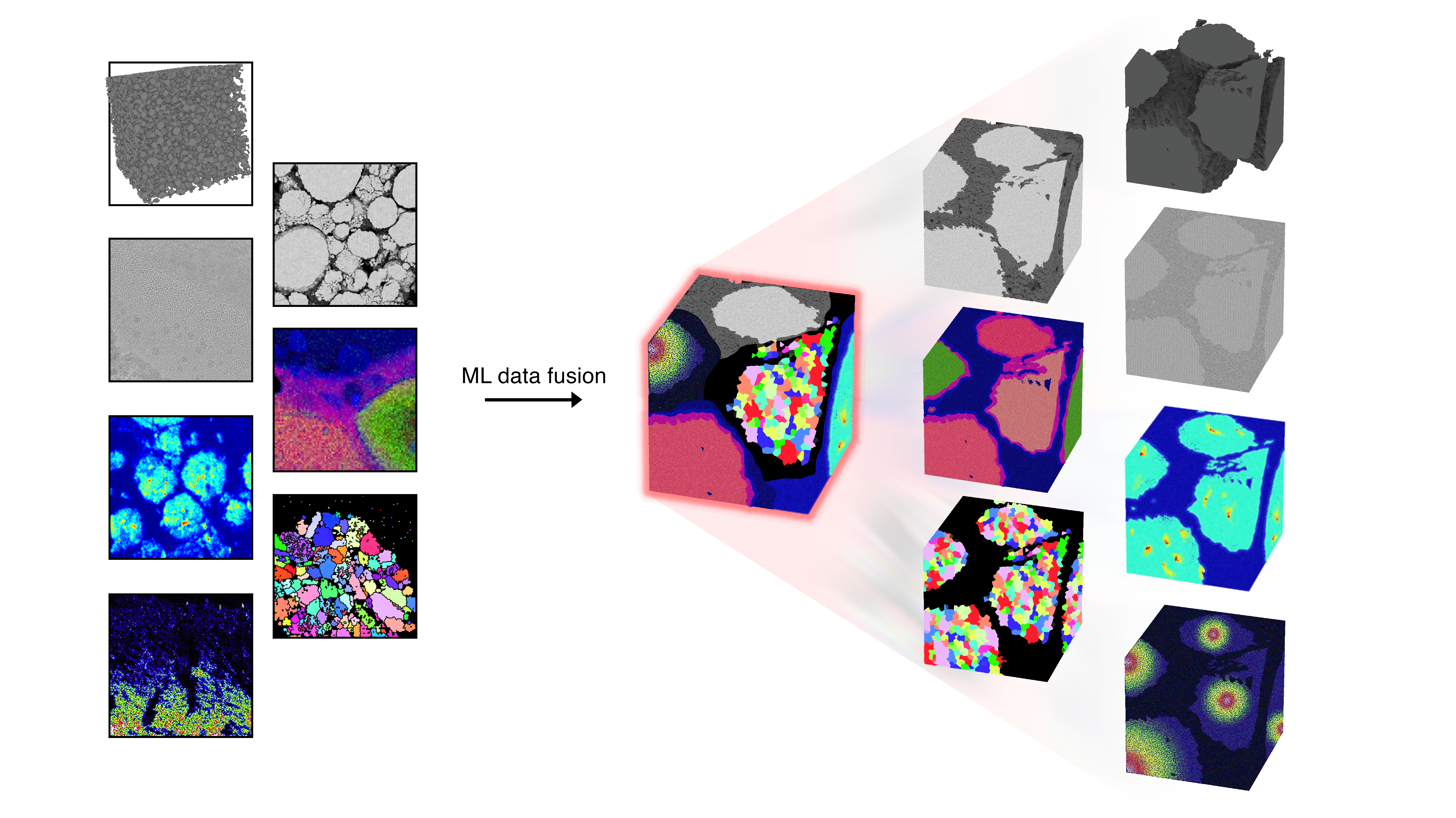 Meeting these three requirements sufficiently well is rarely possible with a single imaging technique. For example, X-ray tomography can capture large volumes, but can be challenged by resolution and phase identification. Alternatively, electron microscopy can achieve much better resolution, but representativity can be a challenge and serial sectioning must be used to capture 3D volumes, which can lead to its own challenges in phase identification in porous materials.
