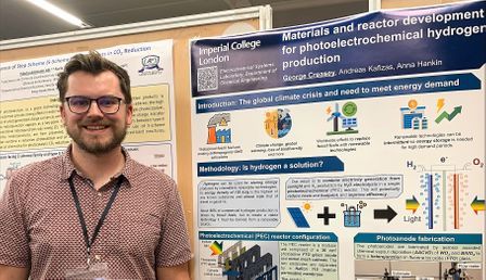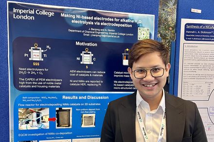 Nahmkang presents his poster on 'Making Ni-based electrodes for alkaline H2O electrolysis via electrodeposition'