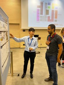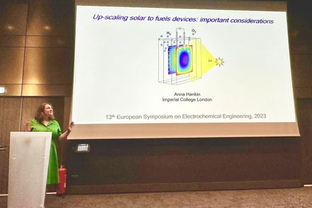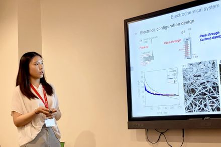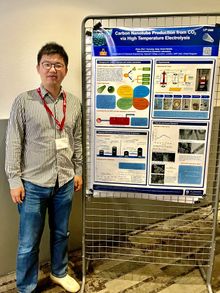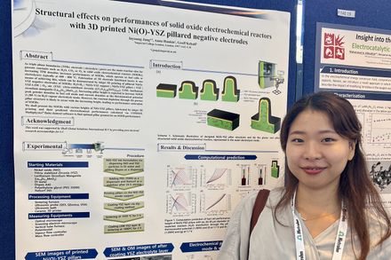 Inyoung presents her poster on 'Structural effects on performances of solid oxide electrochemical reactors with 3D printed Ni(O)-YSZ pillared negative electrodes'