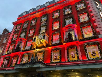 Beautiful facade of Fortnum & Mason in Christmas colours