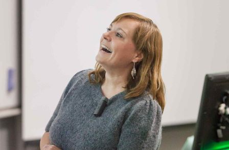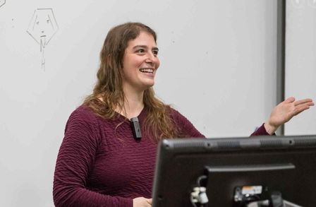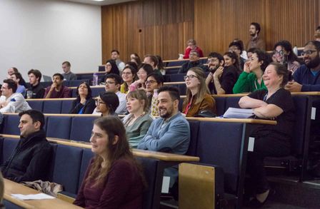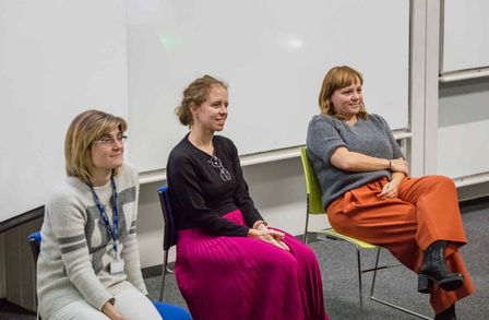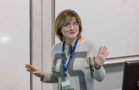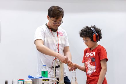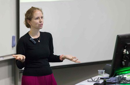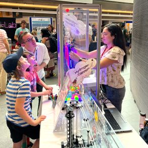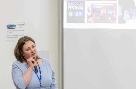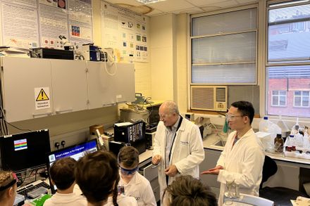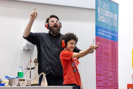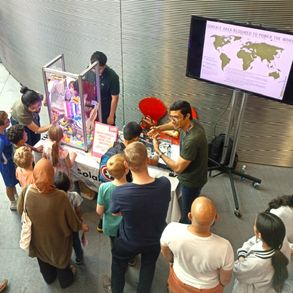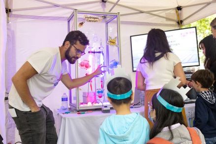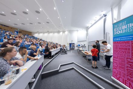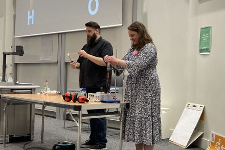 Getting the crowd excited with demos ahead of the talk on 'Sustainable Materials for Energy' by Professor Anna Korre