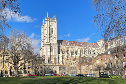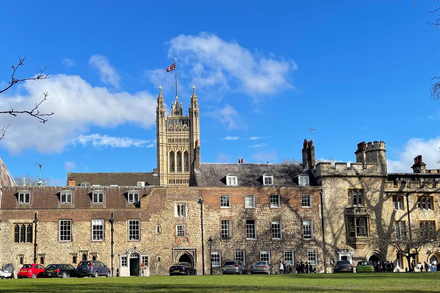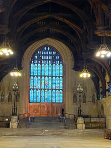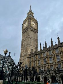 View of Elizabeth Tower from an inner courtyard of the Houses of Parliament