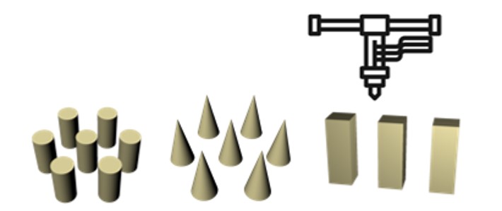 Fabrication of those structures is possible using an ink-jet printing method. Ink-jet printing technology enables the printing of 3D ceramic structures down to the micrometre scale with high precision and reproducibility. The schematic illustration in Figure 4 shows various types of micro 3D geometries that can be produced using inkjet printing method.