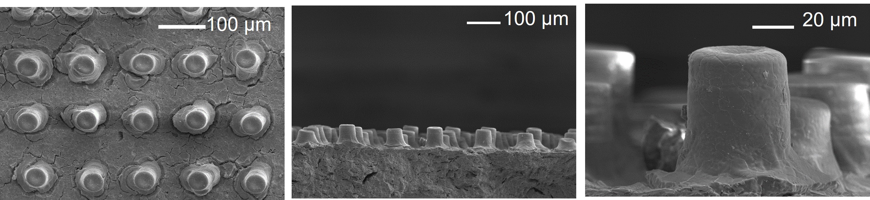 Figure 5 shows the printed micro size YSZ pillars on the YSZ electrode layers using an inkjet 3D printer with 50 layers printing. By using inkjet printing technology, fabrication of the cell with those 3D structured components is possible, thereby increasing the performance of SOERs. Our printer is Ceradop X-Serie (France).