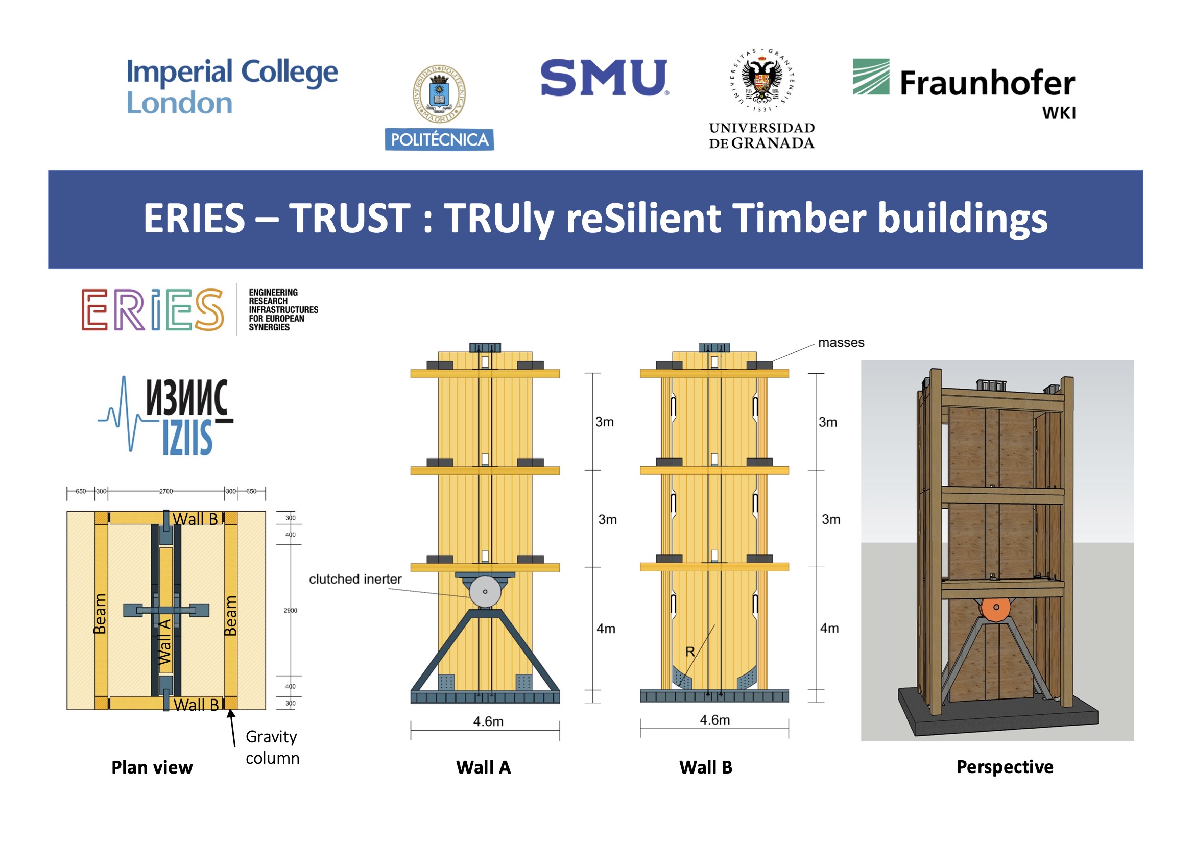 Within the framework of ERIES (Engineering Research Infrastructures for European Synergies), the Imperial-led project ERIES-TRUST-Truly resilient timber buildings will explore the use of inerters as seismic response control devices for rocking timber structures. This is part of a larger effort to provide seismic protective systems that reduce both structural and non-structural damage during earthquakes and is part of a collaboration between Imperial (UK), the Universidad Politécnica de Madrid (Spain), the Southern Methodist University (USA), the Universidad de Granada (Spain) and the Fraunhofer Wilhelm-Klauditz Institute (Germany). A series of large-scale shaking table tests will be conducted at the IZIIS large shaking table facility this coming year. Stay tuned!