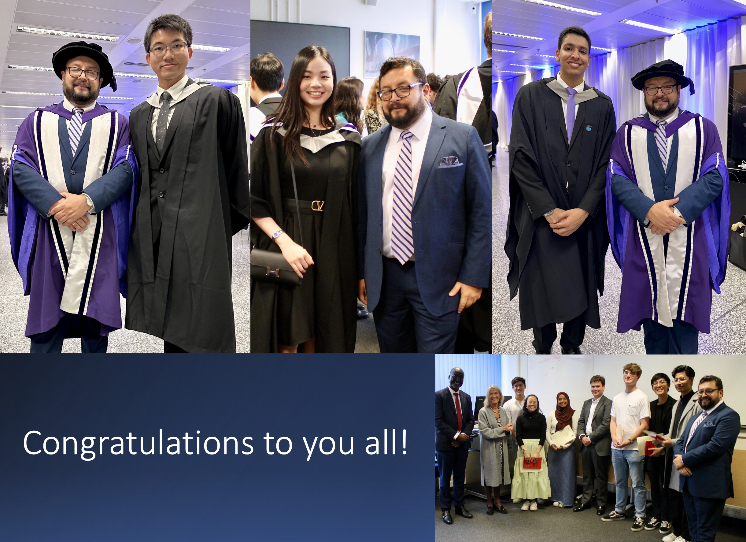 Last week we celebrated the achievements of our graduating students and those entering the final stages of their education. In Lord Lee (top left), who worked with Christian and Josephine on the “Topology optimization for reduced embodied carbon design” of hybrid timber-steel structures in collaboration with the Carstensen Group at MIT received the Robert Bird Award for the Best Research Project in Structures. Elizabeth Yang (top middle), who worked with Christian and Gabriele on “Structural modelling of digitally manufactured OSB beams” in collaboration with Wikihouse, was awarded the Sparkes-Pippard Prize for the Best MEng Student in Structural Engineering. Abdallah Almanzalawy (top right), who undertook the enourmous challenge of the “Seismic damage identification of the iconic structure of Hagia Sophia” also graduated with a MEng. Besides, Wun, Kuldeep, Cavin, Amanath, Gregor, Prame, Luke, Wei, Yu and Zammil (bottom right) received the Peter Fraenkel Prize for the Best Group Design Project for their design of a “New Office Building in Central London” conducted under the supervision of Christian together with Chris and Tom from WSP. Well done to all of you! It was great to applaud you from the stage during your graduation. We will continue cheering up for you wherever your career takes you!