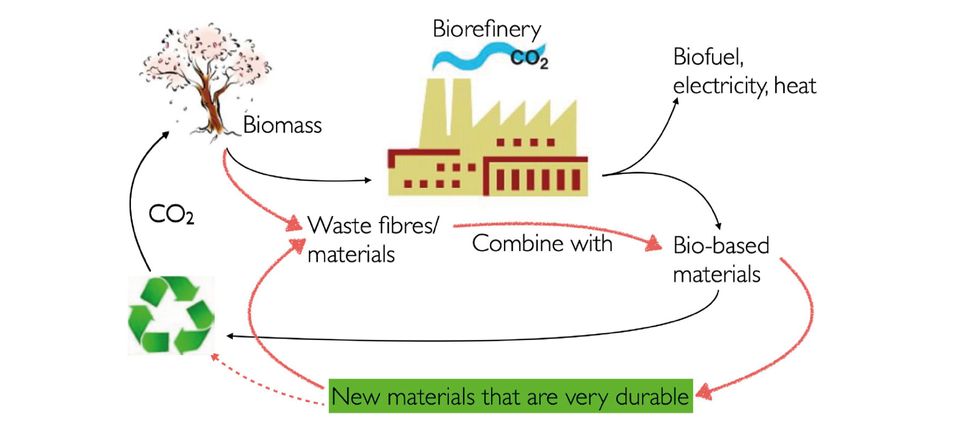 Keeping carbon in the loop! Revolutionise how we think about and utilise (ligno)cellulosic materials to produce high performance durable composites, which can also act as carbon sink
