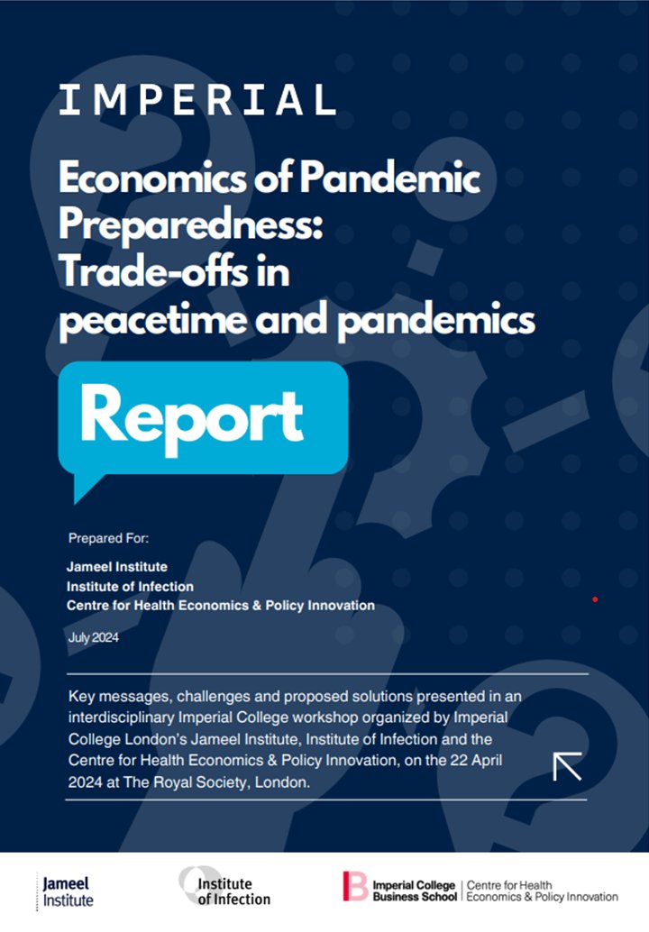 With thanks to the contributors and speakers: Professor Katharina Hauck, Professor Katharina Hauck (Deputy Director, Jameel Institute, Imperial College London), Professor Charles Bangham (Professor Charles Bangham, co-Director, Institute of Infection, Imperial College London), Professor Jonathan Haskel (Imperial College Business School and External Member of the Monetary Policy Committee, Bank of England), Professor John Edmunds (London School Hygiene and Tropical Medicine), Professor Susan Michie (Centre for Behaviour Change, University College London), Dr Ifedayo Adetifa (Clinical epidemiologist, former General Director, Nigeria CDC), Professor Els Torreele (Institute for Innovation and Public Purpose, UCL), Dr Edith Patouillard (WHO Department of Health Financing and Economics), Mr George Richards (Director, Community Jameel), Professor Faith Osier (Co-Director of the Institute of Infection, Imperial College London), Professor Mark Jit (Infectious Disease Epidemiology & Dynamics, LSHTM) and Professor Rifat Atun (Professor of Global Health Systems and Director of the Health Systems Innovation Lab, Harvard University), Sara Williams (Jameel Institute), Ellie Farrow (Jameel Institute).