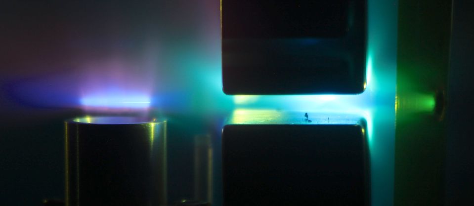A plasma formed within a gas cell, when hit by a high intensity laser.