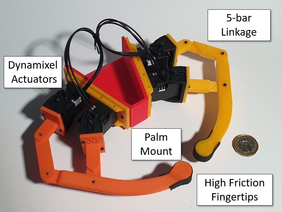 D-PALI stands for Dexterous-PArrallel Linkage. It is a £150 gripper designed as an in-hand manipulation platform. By making use of parrallel mechanisms commonly found in industrial manipulators, we faciliatate the ability to translate and rotate objects within the grasp on the hand.