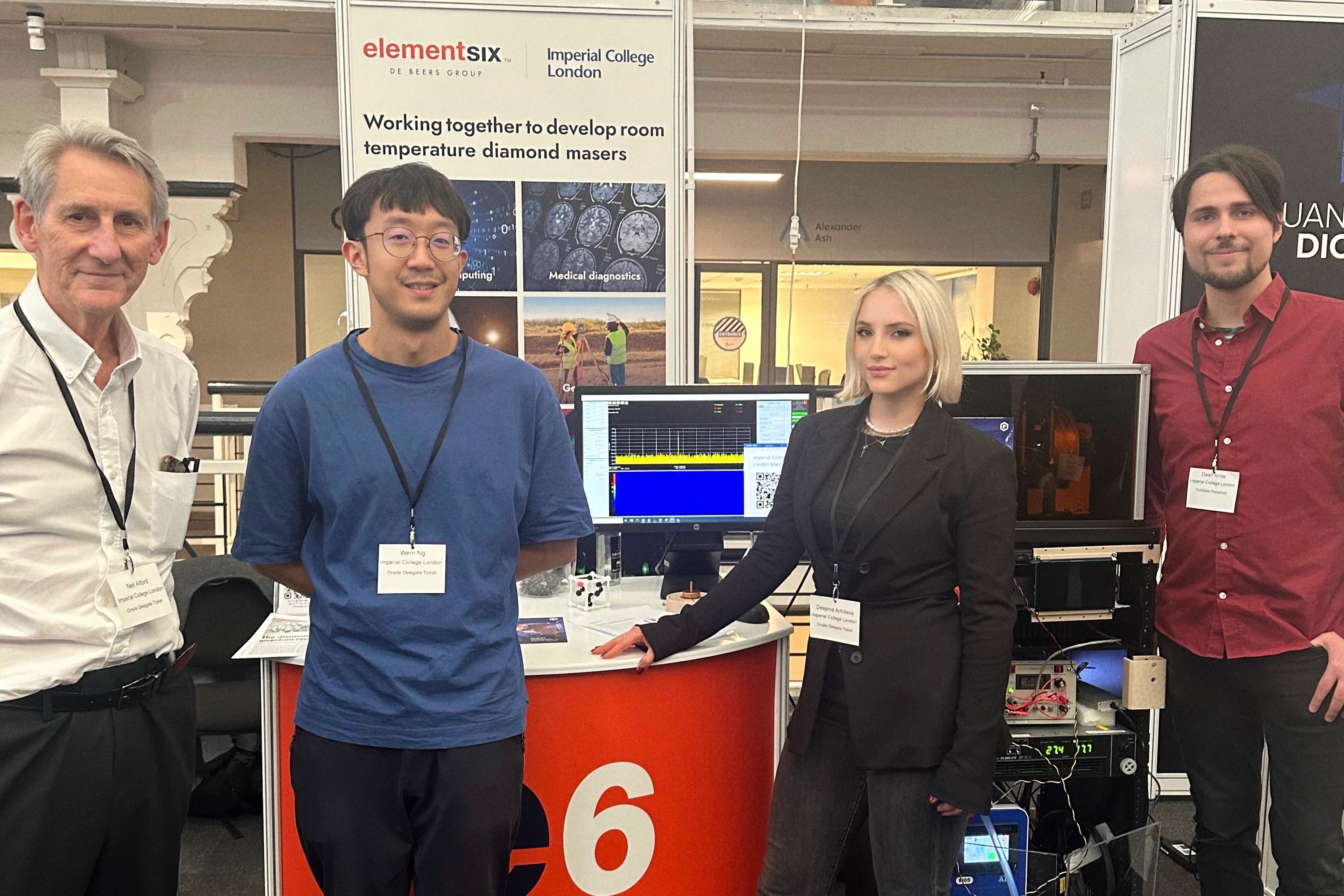 The maser group presented both the diamond maser and pentacene maser at the UK National Quantum Technologies Showcase! We presented our miniaturised maser-on-a-trolley with Element Six and really grabbed the crowd with our orange glowing diamond in a box. The pentacene maser was also presented in collaboration with Imperial QuEST.