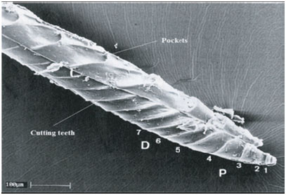 Nature is often a good inspiration for demanding engineering tasks and, particularly, a novel smart actuator has being inspired by the penetration strategy developed by ovipositing wasps: these insects can penetrate different kind of tissues (wood, leaves, host larvae) to lay their eggs. The ovipositor of the wood wasp, Sirex noctilio, for example, has the main function of delivering eggs through a hollow tube along its length. Its tip is about 0.2~0.3mm in diameter and can drill to a depth of up to 20mm into the sapwood of a tree. The applicability of the wood wasp’s anatomy resides in the mechanism of drilling, which does not require rotary motion or impaction.