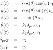 In the above model, the relationship between the forward velocity v1 and the rotational velocity θ ̇ determines the instantaneous curvature ρ of a real trajectory, and it is a function of the steering angle φ, i.e., ρ = tan(φ)/L [2]. Contrary to the bicycle model, however, in our probe, the instant curvature is assumed to be a function of the steering offset δt at the tip of the probe, as follows: