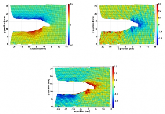 Clockwise from top left: Shear strain during cyclic actuation; Axial strain during cyclic actuation; Radial strain during cyclic actuation.