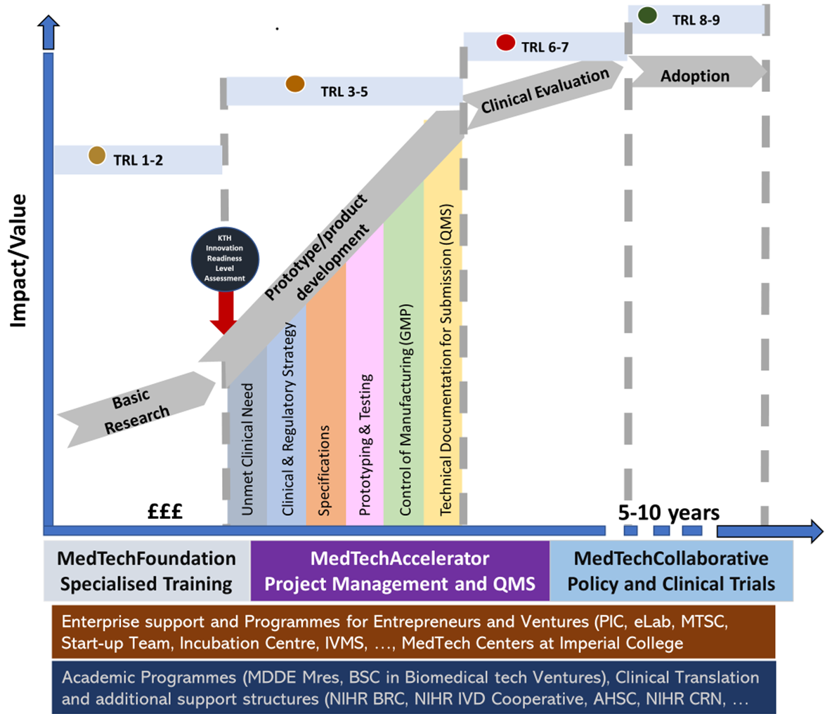 Through our Foundation and Collaborative stream links, colleagues at the NIHR IVD Cooperative and the newly formed NIHR BRC Bioengineering Theme, we are also able to support clinical translation focused projects. Importantly, we also encourage the entrepreneurs to participate in Entrepreneurship development programmes, in particular the Imperial led MedTech Superconnector programme.