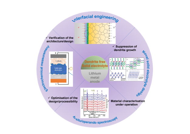 Industrial supervisor: Dr Juyeon Park (SLB, Schlumberger Cambridge Research Limited) The energy storage device market is currently dominated by battery technology which is aligned with global net zero emission ambitions. High performance of the battery requires the optimisation of important parameters such as energy, power, cycle life, cost, and safety, which are strongly linked to materials chemistry, interfacial engineering, and device physics challenges. Although lithium metal anode has attracted significant attention for solid state battery applications owing to its high theoretical specific capacity, the key issues related to undesirable lithium dendrite growth during operation still hinder its full potential for commercialisation. In this project, we aim to address these important interface issues of energy storage devices. We will elucidate fundamental understanding of the interfacial properties by applying innovative interface engineering and by developing in-situ electrochemical and energetics spectroscopic techniques.