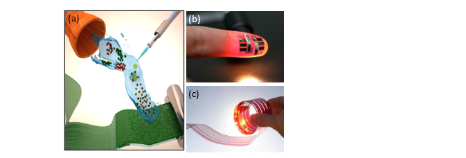 Schematics of printing flexible OPV/OPD devices (a), printed flexible OPD (b) and OPV modules (c). |