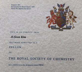 Congratulations to Ji-Seon, who has been admitted as a Fellow of the Royal Society of Chemistry (FRSC).