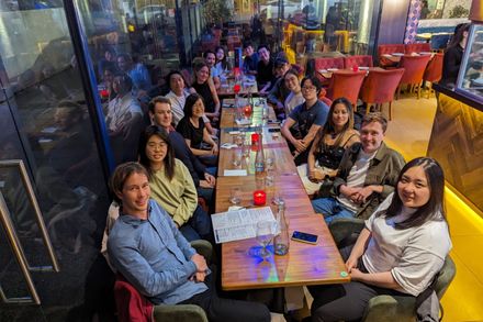 The group enjoyed a dinner out to celebrate Matyas and Joel completing their PhDs, as well as to welcome Emily to the group.