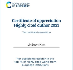 Congratulations to Ji-Seon, who has been recognised by the Royal Society of Chemistry as a highly cited author in 2021.