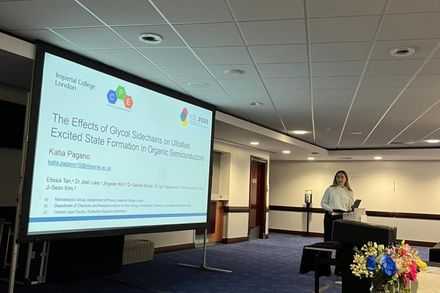 Katia presented her work at ICEL in London. She presented her work using ultrafast spectroscopy to unravel the optoelectronic properties of glycolated polymers.
