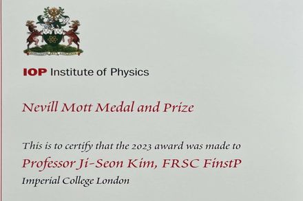 Congratulations to Ji-Seon, who has been awarded the Nevill Mott Medal and Prize.