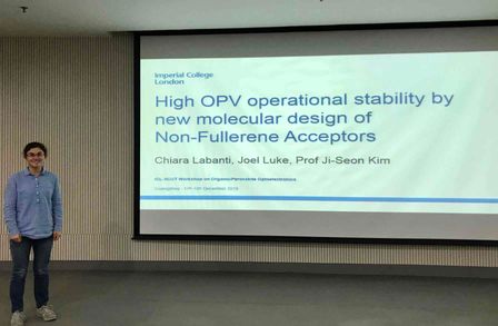 Chiara presented High operational stability of organic bulk heterojunction solar cells achieved by new molecular design of non-fullerene acceptors at the Joint ICL-SCUT Workshop