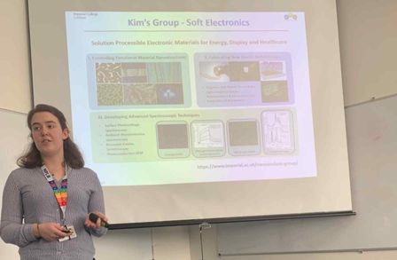 Katie presented her work on “Molecular understanding of π-conjugated polymer/solid-state ionic liquid complex as a highly sensitive and selective VOC sensor” at the PE-CDT Annual Symposium