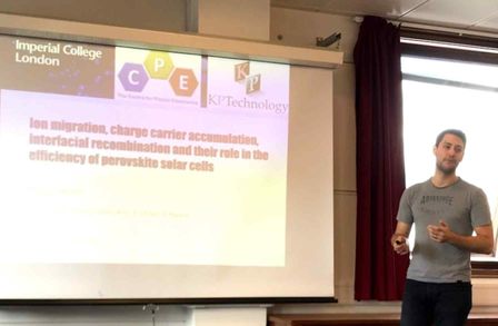 At the Plastic Electronics CDT Symposium, Mátyás presented a talk on Energy level tuning of perovskite layers for efficient integrated perovskite/bulk heterojunction solar cells.