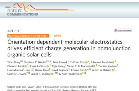 Welcome to Yuang Fu who is joining our group for his MRes working on the energetics of OPV materials.