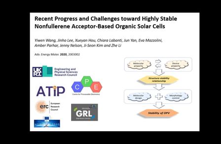 Ji Seon presented Critical Molecular Parameters of Non-fullerene Acceptors for High Performance Organic Solar Cells at Hybrid and Organic Photovoltaics, HOPV20 Online Conference.