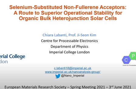 Chiara presented a poster of her MRes work on the stability of NFAs for OPV at the Plastic Electronics CDT Symposium 2019.