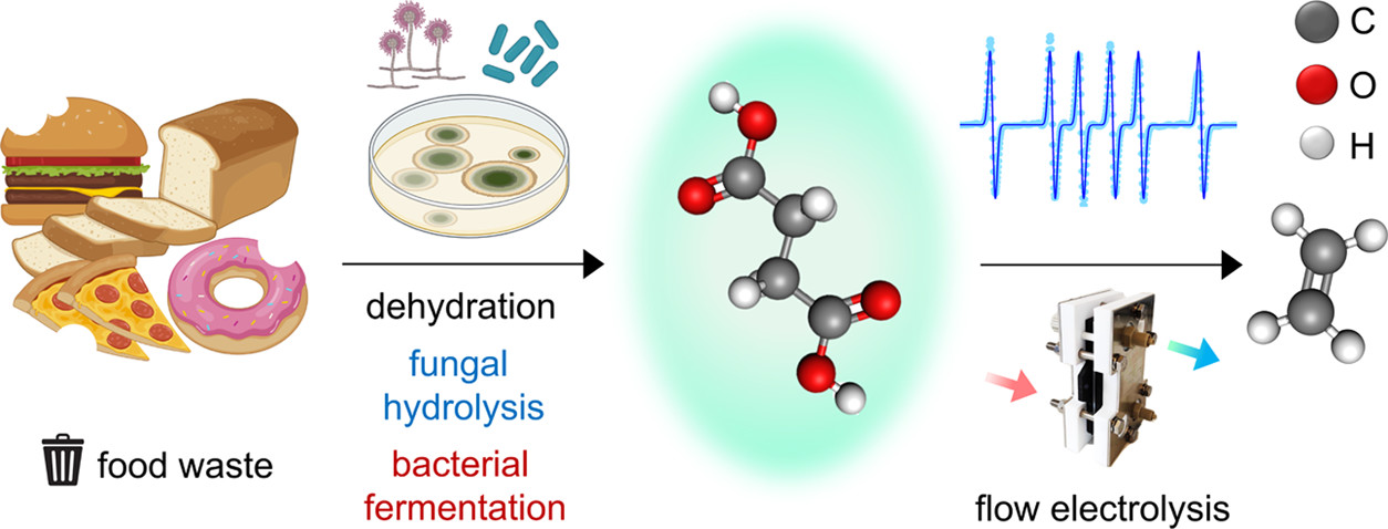 Bio-Electrocatalytic Conversion of Food Waste to Ethylene via Succinic Acid as the Central Intermediate