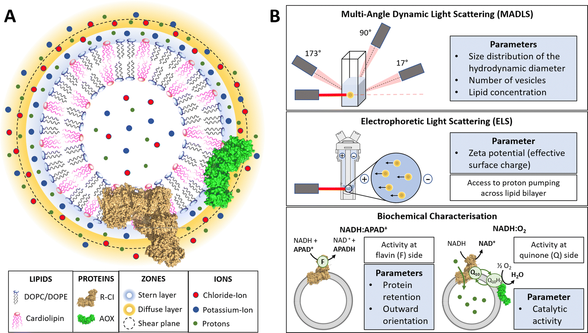 Using light scattering to assess how phospholipid-protein interactions affect complex I functionality in liposomes
