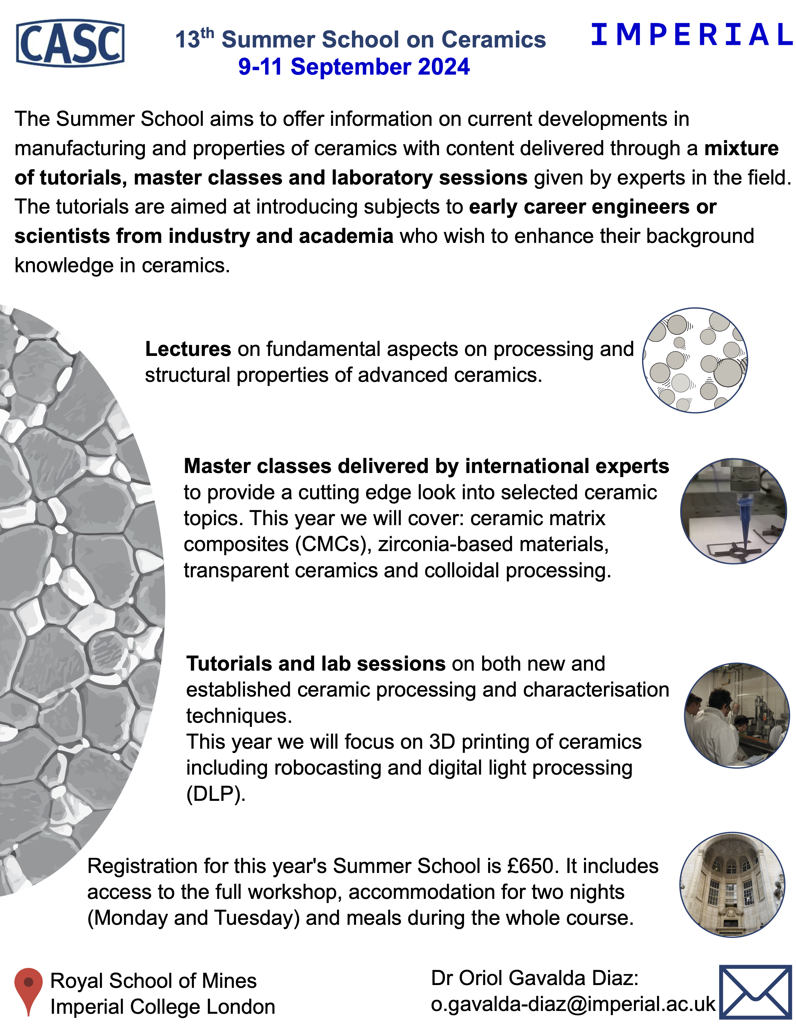The fifth CASC Summer School on Ceramics took place from 17 to 19 September 2014 at Imperial College London.
