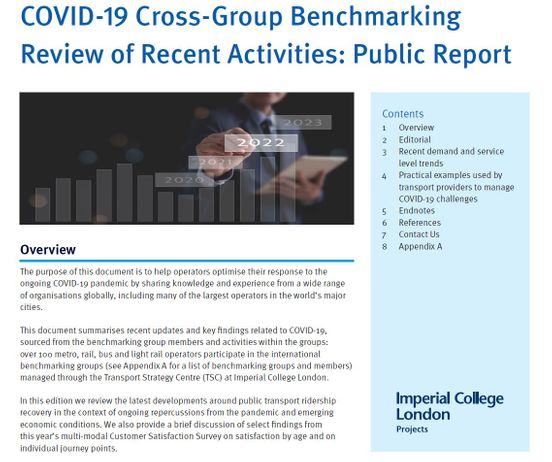 From February 2023, the TSC's cross-group benchmarking review no longer focuses principally on the impact of COVID-19 on the transport industry. The most recent editions of this report can be found under Applied Research > Other Activities.