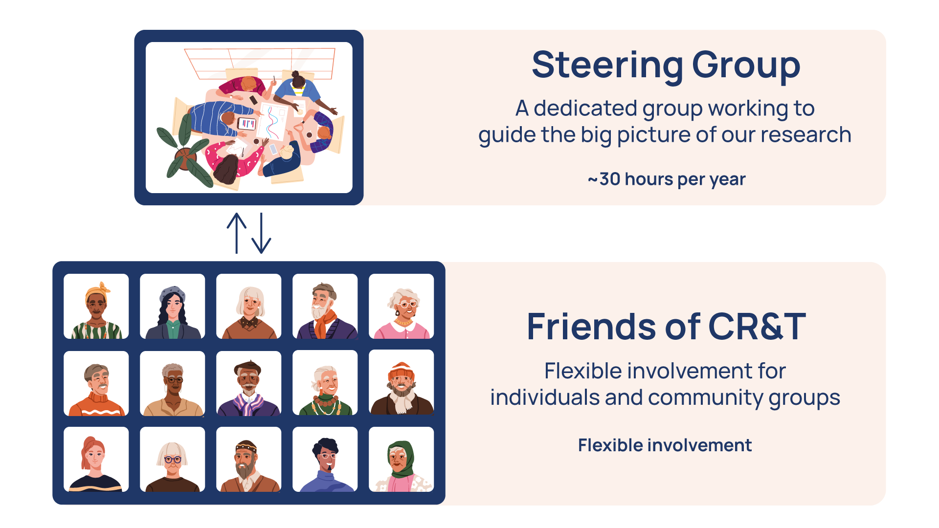 If you'd like to have a more integral role in our Centre's research, you can apply to join our Steering Group. The Steering Group will work alongside our team to shape the big picture of our research and guide the Centre's plans over the coming years.