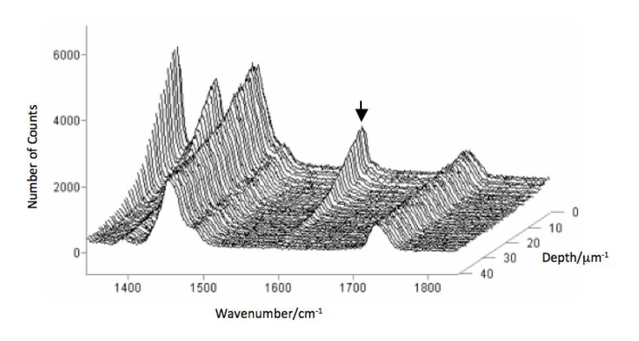 Overall, this research demonstrates that confocal Raman represents a very useful tool to analyse morphological gradients in polymers, polymorphism of drugs and to quantitatively study diffusion in polymer systems in a non-destructive manner which may be of great importance when mechanical sectioning would result in the adjustment of the polymer morphology and or distribution of components in the matrix. Furthermore, the combined application of FT-IR and Raman methods provided confidence in the reliability of the results due to general agreement between FT-IR imaging and Raman microscopic data obtained in this project. The use of supercritical CO2 prevents water pollution in dyeing of textiles and polymers and the application of confocal Raman microscopy, demonstrated in this project, is beneficial for optimisation of these processes.