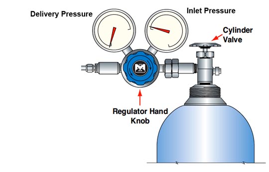 - Close the regulator by rotating the hand knob in a counterclockwise direction.