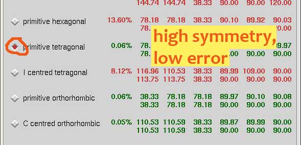 Choose the lattice that you know is correct. If you don't know, pick the one with the highest symmetry that still has negligible distortions/errors. This is colour-coded for your convenience. Green is good. Click Apply & Close to return to the Index tab.