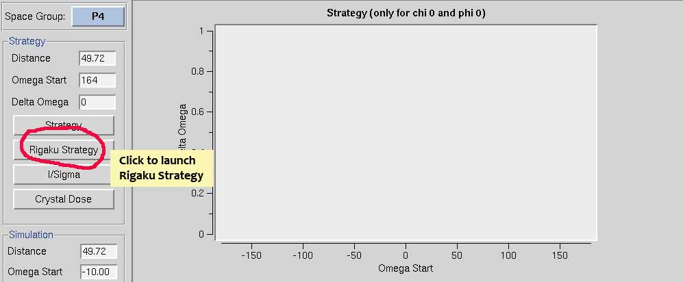 Go to the Strategy tab. Click Connect to launch Rigaku Collection Strategy. You must have indexed your test images first.