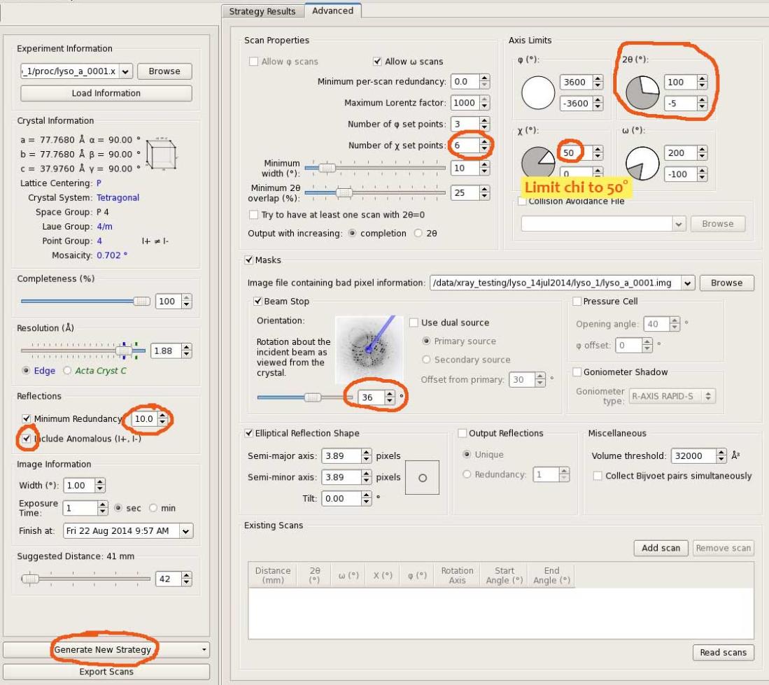 - limit 2-theta to 0° – if you just want to collect a quick native dataset, there's no point to faff with 2-theta (unless you have problems with overlaps)
