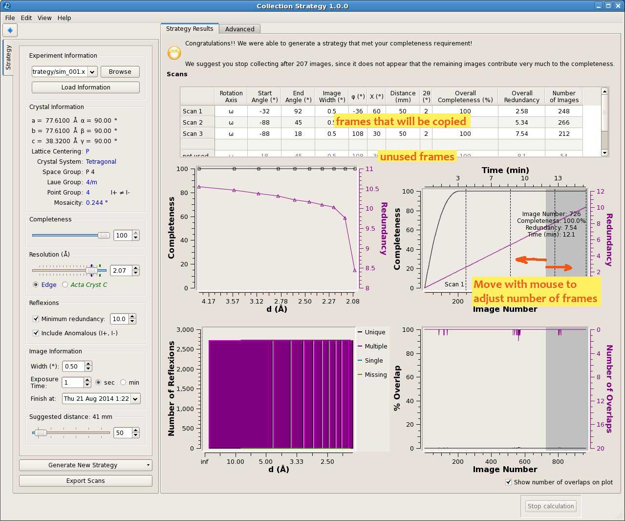 If you're happy with the strategy, close the window. The data will be copied to HKL-3000 automatically. Notice the proposed scans at the bottom of the Strategy tab.